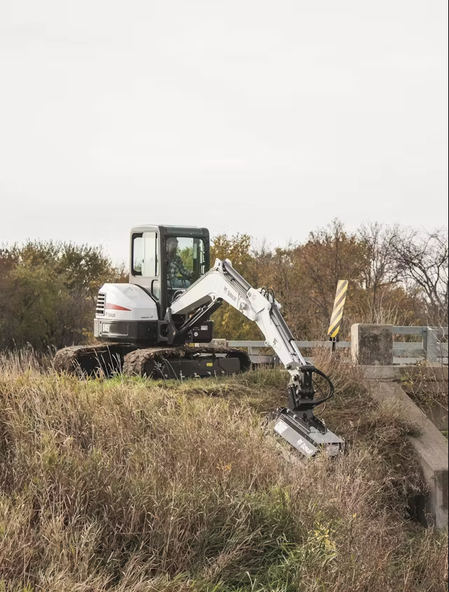 We operate compact construction equipment with a variety of efficient attachments. Digging & grading buckets, mulchers & mowers, augers, hydraulic breakers, and grapples for brush. If you need a specialized tool (stump grinder, large excavator), we will arrange it for the job.